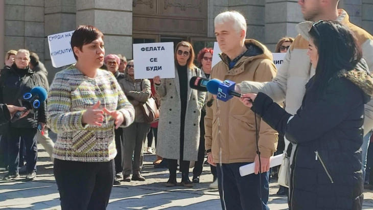 Shkup, 20 shkurt – Ministrja e Financave, Gordana Dimitrieska Koçovska papritur dhe paparalajmëruar erdhi në protestën të cilën e mbajtën kontabilistët profesional të cilëve siç thonë ata, u është marrë e drejta e punës.