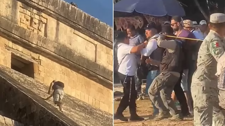 Një turist është cilësuar si idiot pasi u ngjit në një piramidë të lashtë, përpara se të rrihej nga një turmë e zemëruar për kundërshtimin e ndalimit.