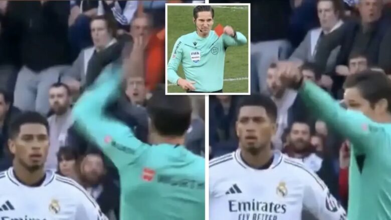 Bellingham mori karton të kuq pak minuta para përfundimit të pjesës së parë, pas një përplasje verbale me gjyqtarin Munuera Montero.