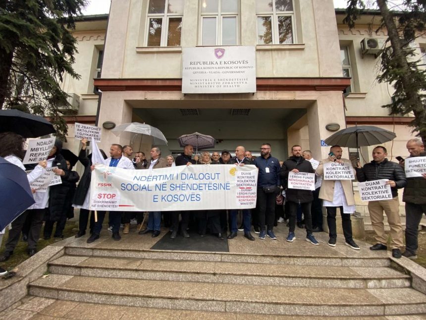 Federata e Sindikatave të Shëndetësisë së Kosovës të enjten ka mbajtur protestë para objektit të Ministrisë së Shëndetësisë, ku kanë paraqitur disa kërkesa, raporton Ekonomia Online.