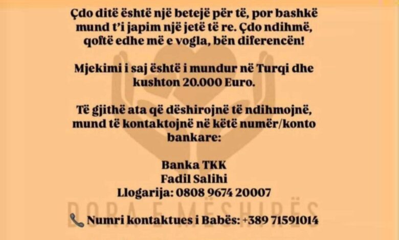 Të gjithë ata që dëshirojnë të ndihmojnë, mund të kontaktojnë në këtë numër/konto bankare: