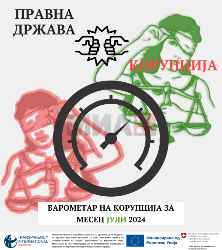 Shkup, 5 gusht – Në “Barometrin” e korrupsionit për muajin korrik të Transparensi Interneshënall-Maqedoni, është mbajtur aktiviteti për monitorimin e rasteve dhe veprimeve lidhur me sjelljet korruptive dhe luftën kundër korrupsionit, i quajtur “Turbullt-Qartë” janë regjistruar më shumë raste “të turbullta” sesa “të qarta”.