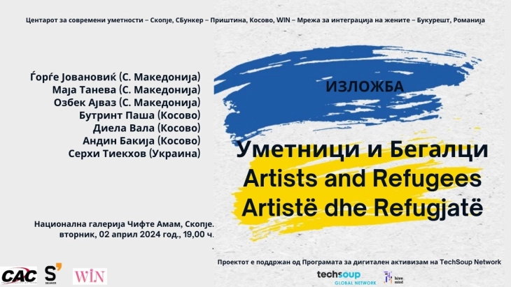Shkup, 2 prill – Në Galerinë kombëtare Çifte Hamam dje është hapur ekspozita “Artistë dhe refugjatë”. Me vepra të veta do të prezantohen Gjorgje Jovanoviq, Maja Taneva dhe Ozbek Ajvaz nga Maqedonia e Veriut, Butrint Pasha, Andin Bakija dhe Diella Vala nga Kosova, si dhe Serhi Tiekhov nga Ukraina.