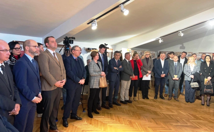 Me këtë rast, ambasadori shqiptar në Shkup, Denion Rexhep Meidani, tha se në këtë 80-vjetor të Holokaustit, ne përulemi para kujtimit të 6 milionë hebrenjve që humbën jetën – burra, gra dhe fëmijë – dhe kujtojmë se pas çdo shifre qëndronte një jetë, një familje dhe një botë e tërë e shkatërruar. Më tej, Meidani tha se ekspozita na fton të shohim të kaluarën me sytë hapur, të kuptojmë se si veprimet e vogla – të guximshme apo indiferente – mund të formësojnë fatin e brezave. “Dokumentet dhe historitë që shfaqen këtu janë dëshmi e fuqisë së shpirtit njerëzor për të zgjedhur të drejtën edhe atëherë kur bota humbet fillin”, u shpreh ambasadori Meidani.