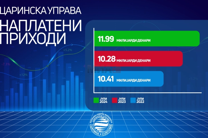 Shkup, 14 gusht – Drejtoria Doganore në korrik ka realizuar gjithsej të hyra prej 11.9 miliardë denarë, gjegjësisht 195 milionë euro, që është për 16,6 për qind më e lartë krahasuar me të njëjtën periudhë të vitit 2023. Drejtoria njoftoi se kjo është shuma më e lartë e të ardhurave të mbledhura të realizuara në bazë mujore që nga ekzistenca e saj.