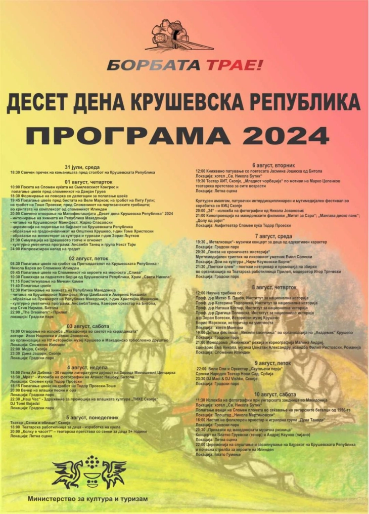 Manifestimi do të përcillet me fishekzarre, program kulturoro-artistik dhe sulm të improvizuar në Krushevë, si dhe përkujtim i ditëve të Ilindenit dhe Republikës së parë në Ballkan.