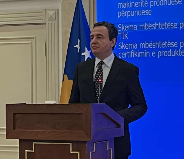 “Është kënaqësi e veçantë të jem sot në ceremoninë e nënshkrimit të marrëveshjeve për mbështetje financiare të 198 ndërmarrjeve të vogla dhe të mesme. Këto ndërmarrje janë përzgjedhur për mbështetje në vlerë prej 8.9 milionë euro nga Ministria e Industrisë, Ndërmarrësisë dhe Tregtisë, përmes Agjencisë për Ndërmarrësi dhe Përkrahje në Kosovë. Kemi vizion për qeverisje të mirë, zhvillim të vazhdueshëm, mirëqenie, siguri dhe barazi. Krijimi i kushteve të favorshme për të bërë biznes është ndër prioritetet tona kryesore. Me këtë investim po ofrojmë mbështetje direkte për shpalosjen e potencialit të bizneseve, të cilat janë kontribuuese të rëndësishme në zhvillimin e mëtejmë të vendit”, deklaroi Kurti.