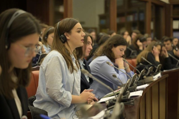 Nxënësit e shkollave të mesme nga SHMK “Koço Racin” – Veles, nga SHMMQSH “Pançe Karagjozov” dhe nga SHMEJQSH “Vasil Antevski Dren” diskutuan tri tema, dhe nuk munguan replikat dhe kundërreplikat si në seancë të vërtetë parlamentare.