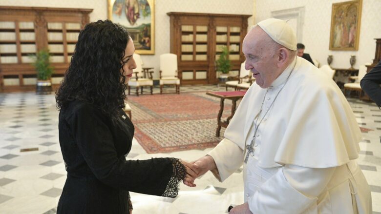 Në një mesazh ngushëllimi, Presidentja e Republikës së Kosovës, Vjosa Osmani, shprehu pikëllimin e saj për ndarjen nga jeta të Papës, duke vlerësuar trashëgiminë e tij si një lider shpirtëror që frymëzoi botën me mesazhet e paqes dhe dinjitetit njerëzor.