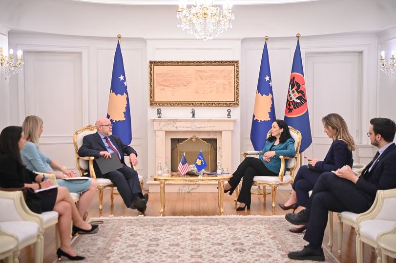 Presidentja e Republikës së Kosovës, Vjosa Osmani, ka pritur sot në takim të rregullt ambasadorin e SHBA-ve, Jeffrey Hovenier, me të cilin ka diskutuar lidhur me bashkërendimin e agjendës ndërkombëtare, çështje të sigurisë, duke pasur parasysh kërcënimet e vazhdueshme dhe destabilitetin e krijuar nga Serbia, çështje që kanë të bëjnë me të drejta të komuniteteve joshumicë, përpjekjet e përbashkëta për luftimin e dhunës mbi baza gjinore, si dhe një sërë çështjesh të tjera të interesit të përbashkët.