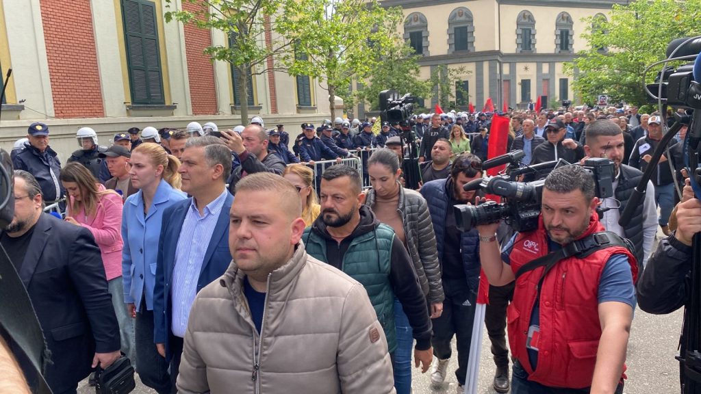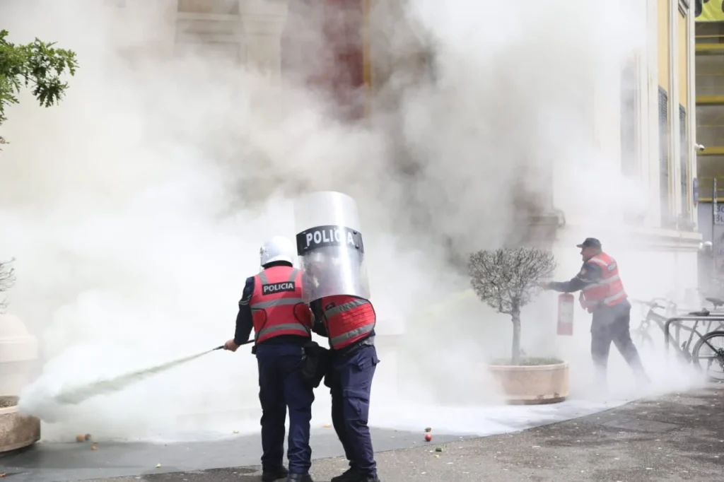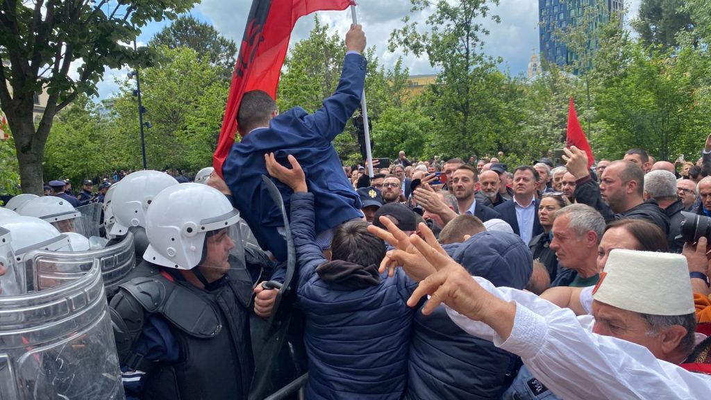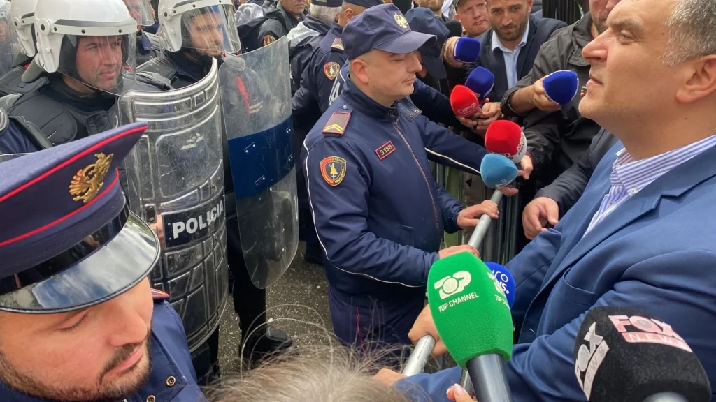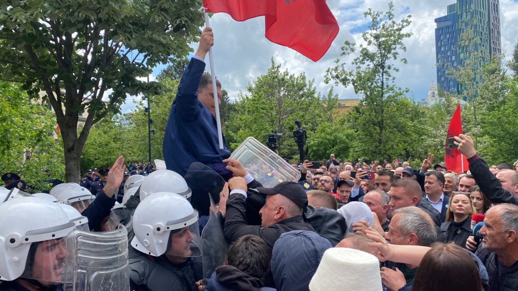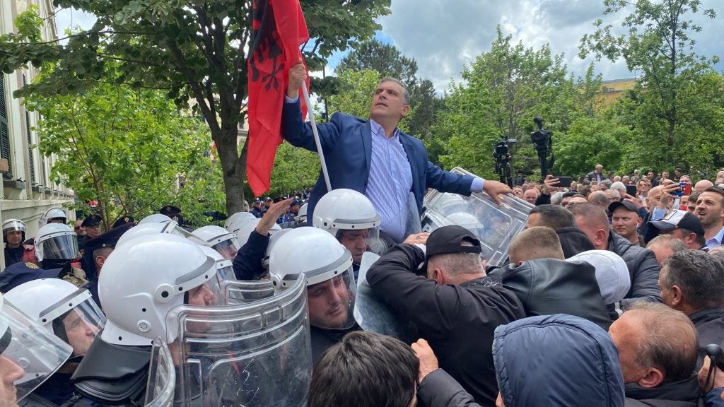 Tedi Blushi ka tentuar që të futet me forcë në bashki, duke “kapërcen” mbi kokat e protestuesve, por është ndaluar nga policia