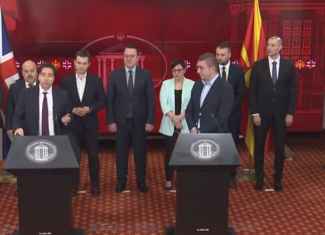 Shkup, 17 maj – Kryeministri Hristijan Mickoski në konferencën e përbashkët për shtyp bashkë me ambasadorin britanik Matthew Lawson, bëri të ditur disa nga projektet që do të financohen nga paratë e siguruara prej marrëveshjes për partneritet strategjik me Mbretërinë e Bashkuar.