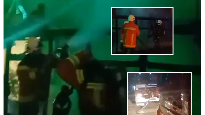 Banorët e një pallati ngjitur me biznesin kanë dalë jashtë për shkak të përmasave të mëdha të flakëve.
