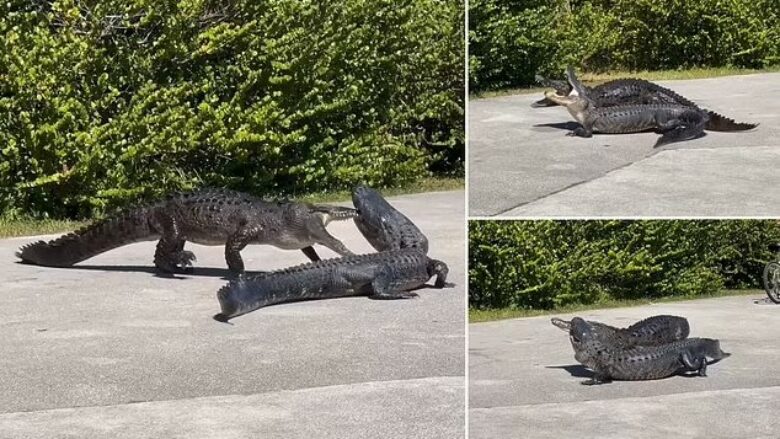 Pamjet amatore shfaqin dy reptilët duke kafshuar njëri-tjetrin dhe duke u shtyrë në Florida, transmeton Telegrafi.