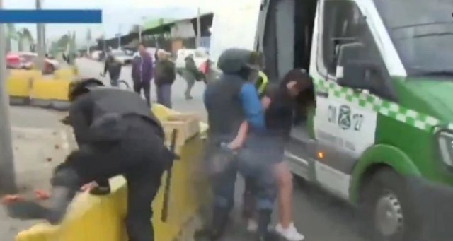 🇨🇱 #Chile: A woman snatched gun from a police guard in the middle of a police procedure and began shooting, leaving two injured, a cameraman who was at the scene and a guard. pic.twitter.com/43qaNB3RuO