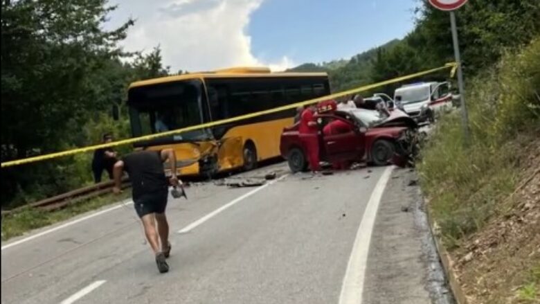 “Është raportuar se ka ndodhur aksident trafiku në mes një veture me vozitës mashkull kosovar dhe një autobusi. Si pasojë përveç dëmeve materiale lëndime trupore kanë pësuar disa persona /pasagjerë dhe vozitësi i veturës i cili nga plagët e rënda ka ndërruar jetë”, thuhet në njoftim.
