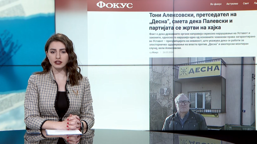 Rast i tillë është intervista e “Fokus”-it me kryetarin e ri të partisë “E Djathta” (Desna), Toni Aleksovski, e botuar më 26 mars 2024. Ai në intervistë bën pohime të pasakta për ekstradimin nga Turqia të të dyshuarit për vrasje, Lupço Palevski-Pallço, ish-lider i partisë “E Djathta”: “Nuk është ekstraduar vetëm sepse Ministria maqedonase e Drejtësisë ende nuk ka kërkuar zyrtarisht ekstradimin e Palevskit”, thotë Aleskovski në intervistë.