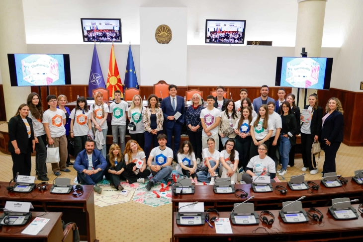 Shkup, 8 maj – Në hapësirat e Kuvendit të Republikës së Maqedonisë së Veriut, dje u zhvillua finalja e madhe e “Electionville” – një lojë edukative dhe interaktive që simulon procesin e qeverisjes lokale dhe marrjes së vendimeve.