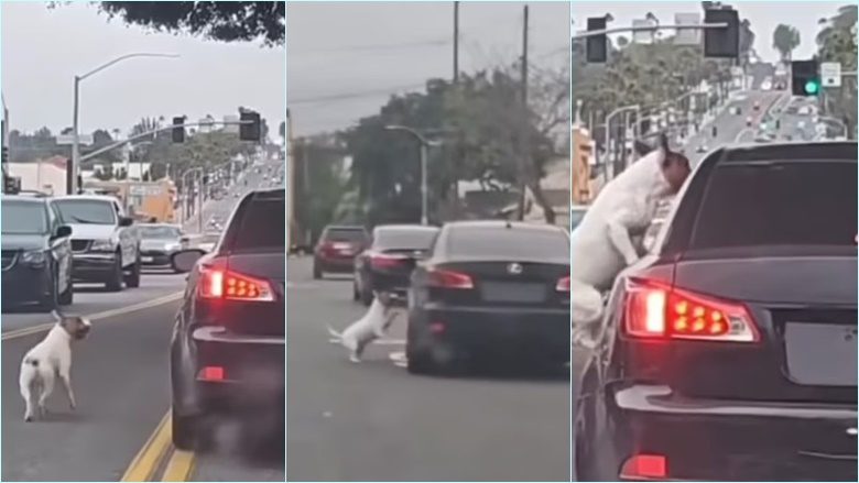 Dhe ai ka regjistruar skenën teksa qeni po ndiqte pa shpresë pronarin e tij ndërsa ai po largohej me shpejtësi, përcjell Telegrafi.