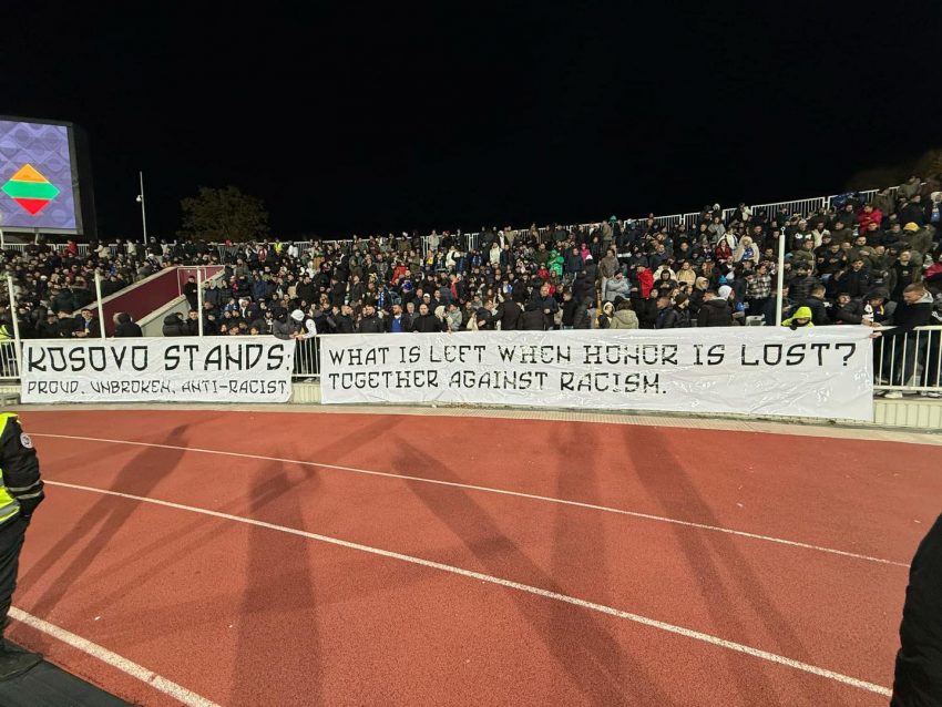 Tutje, në sfidën e së hënë me Lituaniën, të cilën Kosova e fitoi me rezultat 1-0, tifozët dardanë shfaqen banerin “Së bashku kundër racizmit”, derisa një ditë më pas, përmes një postimi në rrjetet sociale kanë thënë se nuk do të qëndrojnë të heshtur përballë përball fyerjeve duke shtuar se lojtarët do ta kenë gjithmonë mbështetjen e tyre.