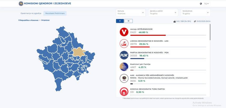 Sipas të dhënave nga KQZ, në shtatë komunat më të mëdha të Kosovës, Lëvizja Vetëvendosje është partia që kryeson dukshëm me numër të votave krahasuar me partitë tjera.