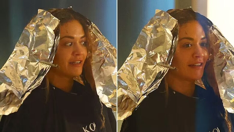 Rita Ora duket se ka pësuar një transformim dramatik në pamje, pasi u fotografua me flokët mbuluar me folie në një sallon bukurie në Bondi, Australi.