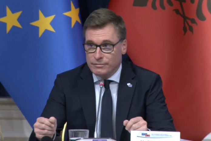 “Shqipëria është vërtetë pranë, një nga vendet me performacën më të mirë të negociatave për anëtarësimin në BE dhe me gjithë zemër uroj që të arrini ambiciet që keni për të mbyllur deri në fund të 2027 gjithë kapitujt në mënyrë që të bëheni anëtarë me të drejta të plota deri në vitin 2030.