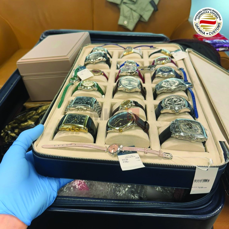 Shkup, 5 qershor – Nëpunësit doganor në Aeroportin Ndërkombëtar të Shkupit gjatë kontrollit të valixheve të një udhëtari nga Turqia zbuluan 22 orë të brendit “Nika” në vlerë të përgjithshme prej 272 mijë denarë të cilat ai nuk i ka raportuar gjatë hyrjes në shtet.