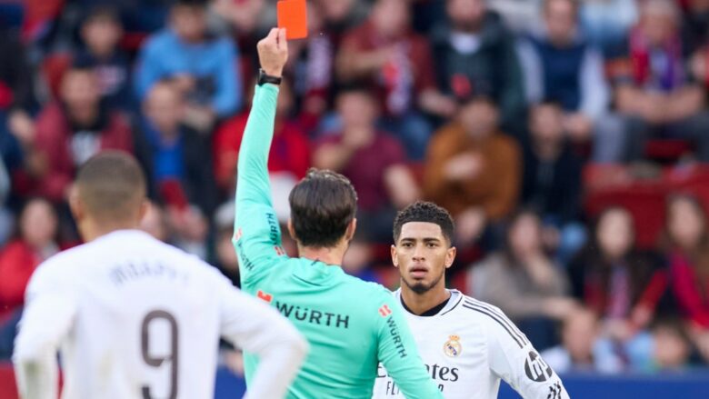Komiteti i Garave ka konfirmuar një pezullim për yllin e Real Madridit, Jude Bellingham, pasi protestat e tij i dhanë atij një karton të kuq gjatë barazimit 1-1 me Osasunan. Reprezentuesi anglez do të mungojë në dy ndeshje.