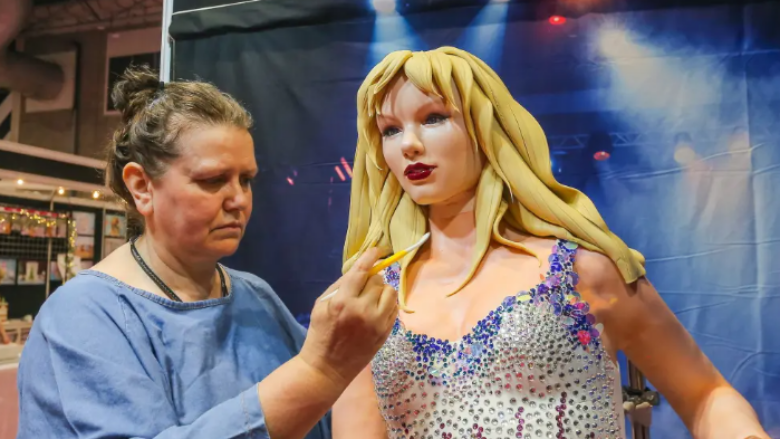 Mendohet se Elza shpenzoi më shumë se 100 orë duke krijuar modelin e saj të Taylor Swift, me fustanin ikonik të kaltër me të bardhë që këngëtarja veshi në The Eras Tour.