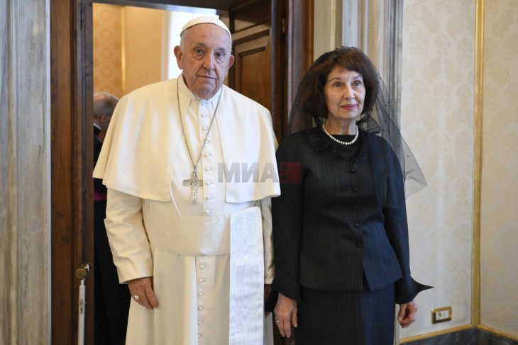Romë, 23 maj – Për mbështetjen për integrimin evropian të vendit por edhe të gjithë Ballkanit Perëndimor, si dhe për ngjarjet aktuale botërore, sot në Vatikan diskutuan presidentja Gordana Siljanovska-Davkova dhe kreu i Kishës Katolike romake, Papa Françesku.