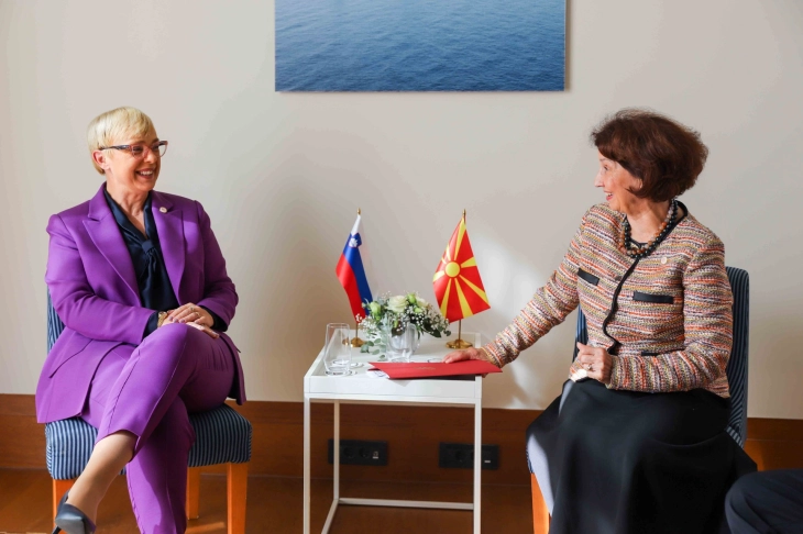 Siç kumtoi Kabineti i presidentes, dy bashkëbisedueset këmbyen mendimedhe informata për të ardhmen tonë në kontekst të procesit të inkaudrimit në Bashkimin Evropian, me ç’rast presidentja Siljanovska Davkova u falënderua sinqerisht për mbështetjen e fuqishme dhe të hapur sllovene për integrimit evropian të vendit tonë dhe theksoi se procesi nuk guxon të jetë peng i çështjeve bilaterale.