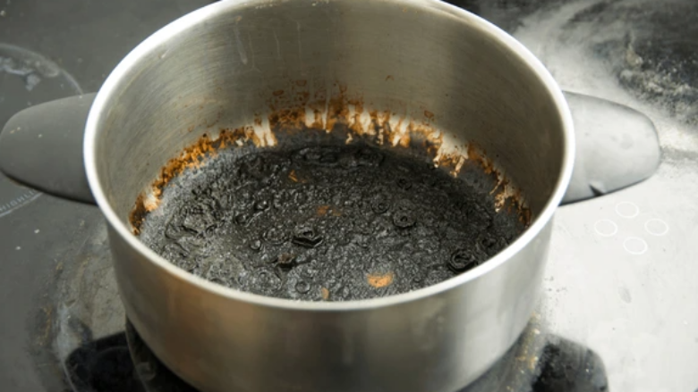 Për të hequr njollat e yndyrshme nga ushqimi i djegur në tiganët dhe tenxheret tuaja, mjafton të përzieni sodën e bukës dhe uthullën.