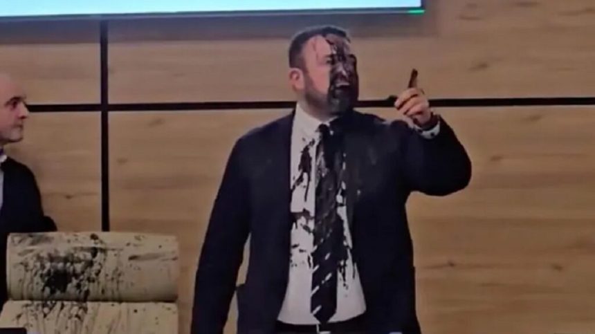 Ka qenë një përfaqësues i partisë opozitare në Gjeorgji, i cili iu afrua Giorgi Kalandarishvilit dhe i hodhi në fytyrë një gotë me bojë.