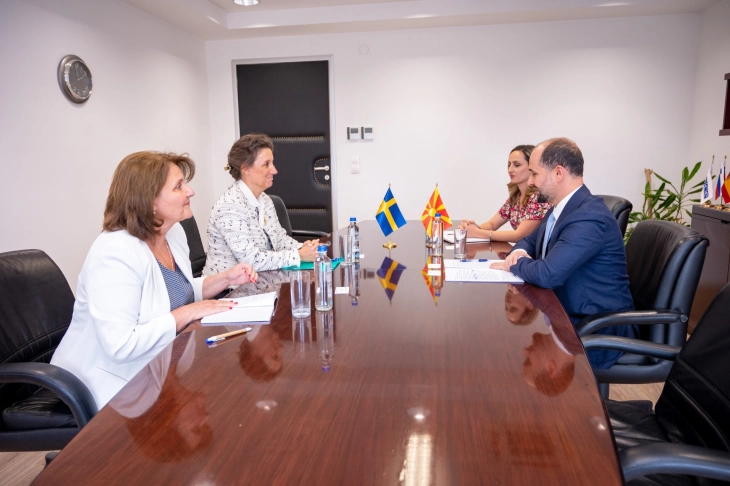 Shkup, 1 gusht – Ministri për Çështje Evropiane, Orhan Murtezani, sot realizoi takim protokollar me ambasadoren e Suedisë në Maqedoninë e Veriut, Ami Larson Xhejn, ku u shqyrtua bashkëpunimi aktual zhvillimor dhe potencialet për thellimin e marrëdhënieve bilaterale.