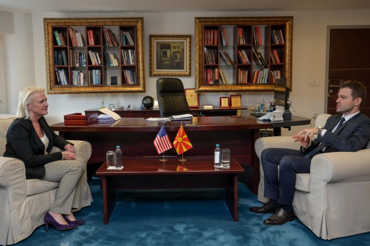 Shkup, 17 shtator – Ministri i Punëve të Jashtme dhe Tregtisë së Jashtme, Timço Mucunski, sot ka takuar ambasadoren e SHBA-së, Angela Ageler, me të cilën ka biseduar për Asamblenë e Përgjithshme të ardhshme të KB-së, eurointegrimet e Maqedonisë së Veriut dhe rëndësinë e përshpejtimit të procesit, i cili do të kontribuonte në zhvillimin ekonomik, përmirësimin e shtetit ligjor dhe luftën kundër korrupsionit.