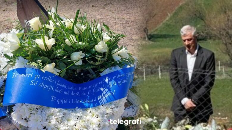 “Te varri yt erdha i fundit, babë”, Mbishkrimi prekës në kurorën që vendosi Thaçi te varri i babait të tij