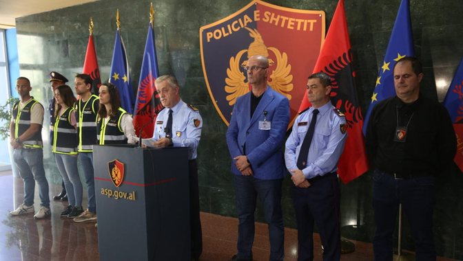 Drejtori i Përgjithshëm i Policisë së Shtetit, Muhamet Rrumbullaku, në një konferencë për shtyp dha detaje për megaoperacionin që goditi një grup kriminal që ka qenë i përfshirë në falsifikim të pasaportave e më pas mundësimin e udhëtimit ilegal të emigrantëve përmes tokës apo ajrit.
