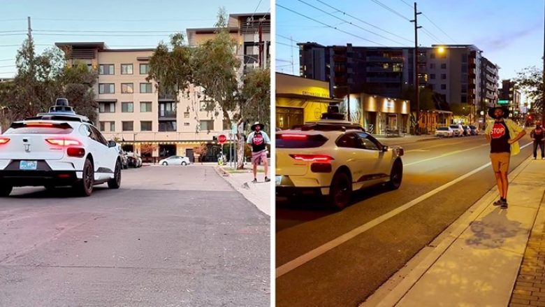 Veshi bluzën me shenjën e komunikacionit “stop”, robotaksitë autonome ndaleshin para tij