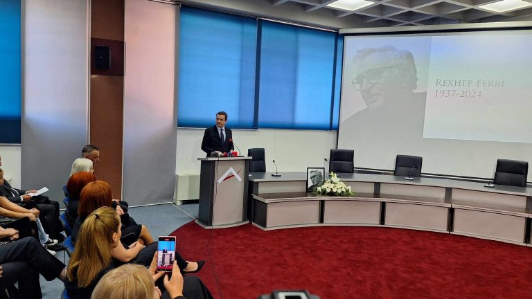 Më një minutë heshtje, Në respekt të jetës dhe veprës së akademik Rexhep Ferrit, ka filluar mbledhja komemorative dhe homazhe.